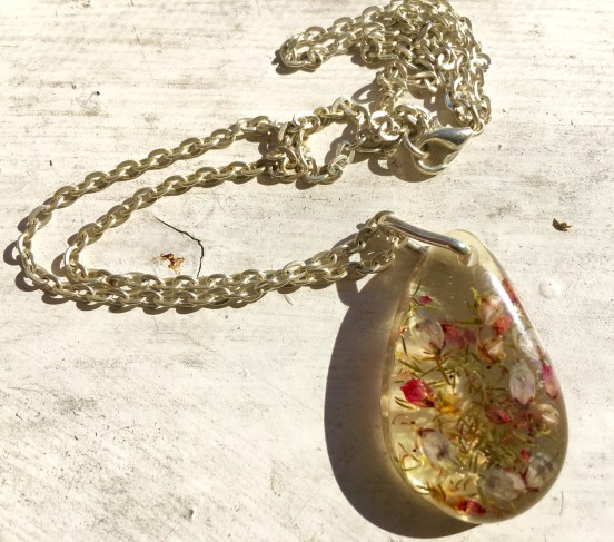 Earlier this year, I saw a story floating around the internet on the beauty of flowers embedded in resin jewelry and naturally – my first reaction after oohing and aaahing, was to snag myself a piece…or four.