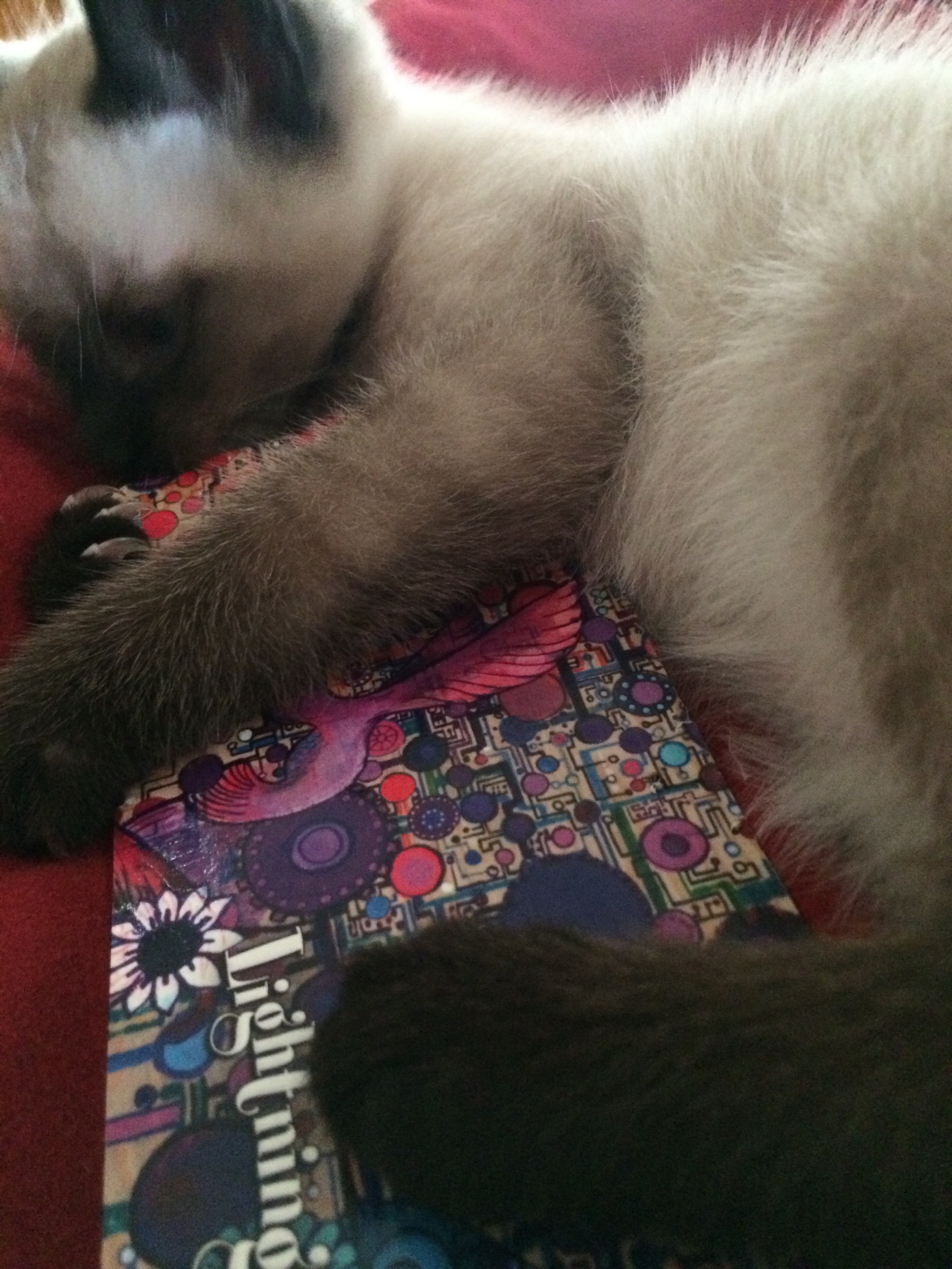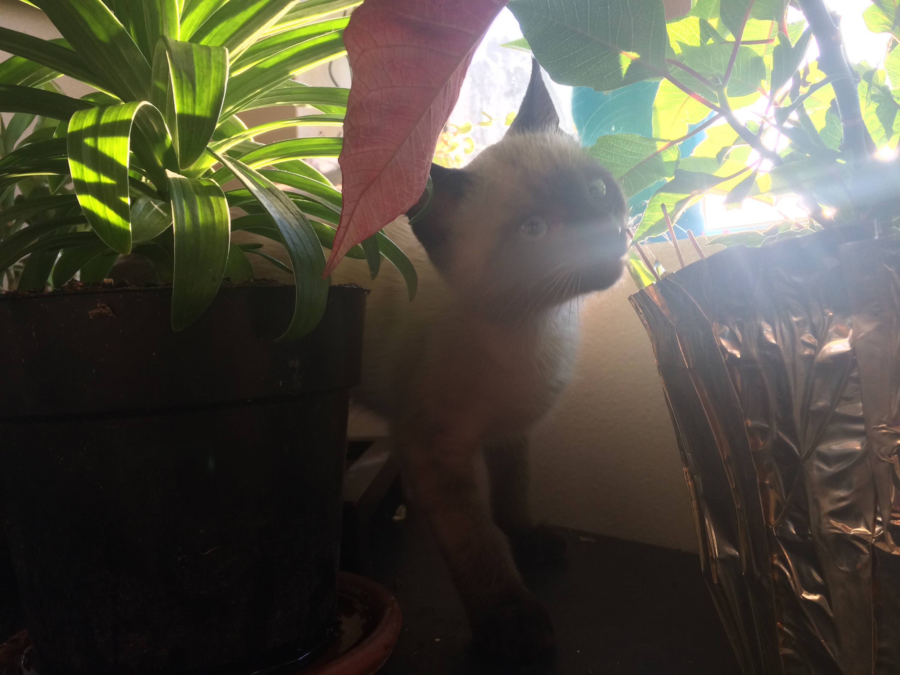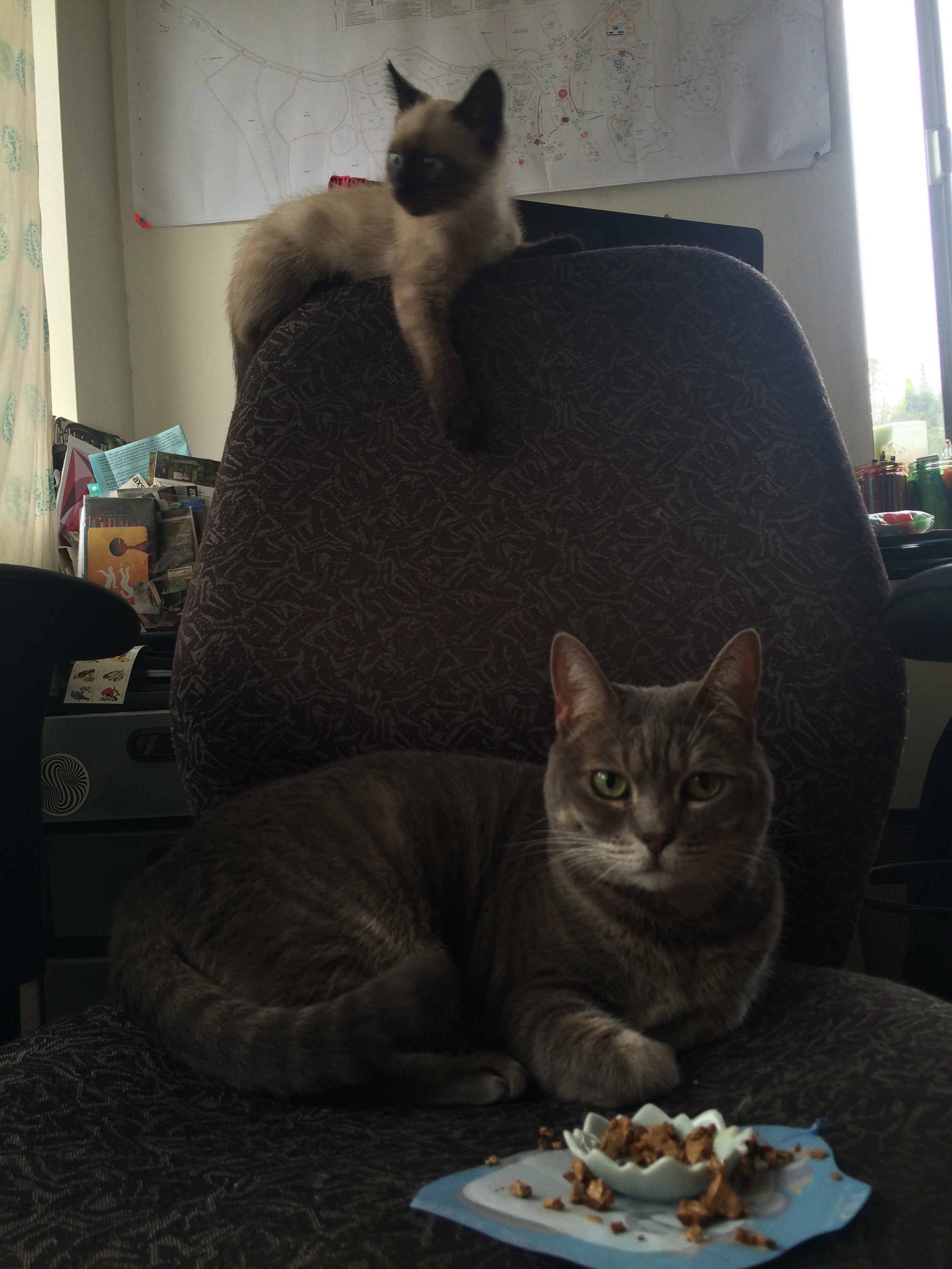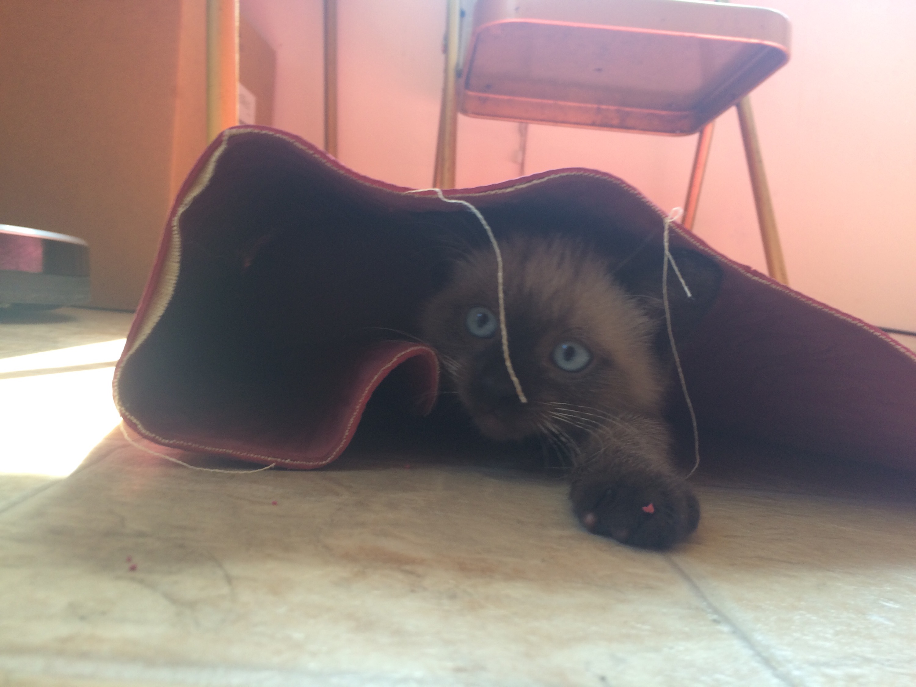 I glanced at an 8 month old Siamese that I immediately wanted to bring home, and a litter of orange tabby kittens not more than 2 weeks old. After getting to know me a bit, the young man working this room had a visceral lightbulb moment…“There’s a cat over here that I think will be perfect for you; he’s a little trickster and a lover.” As we walked over to the carrier, a beautiful blue-grey cat sat poised in the back of the cage. “No…” I mused “…what about the playful girl next to him?” The man smiled back “Why don’t you guys go into the play room, and if it’s not a good fit we can keep looking.”