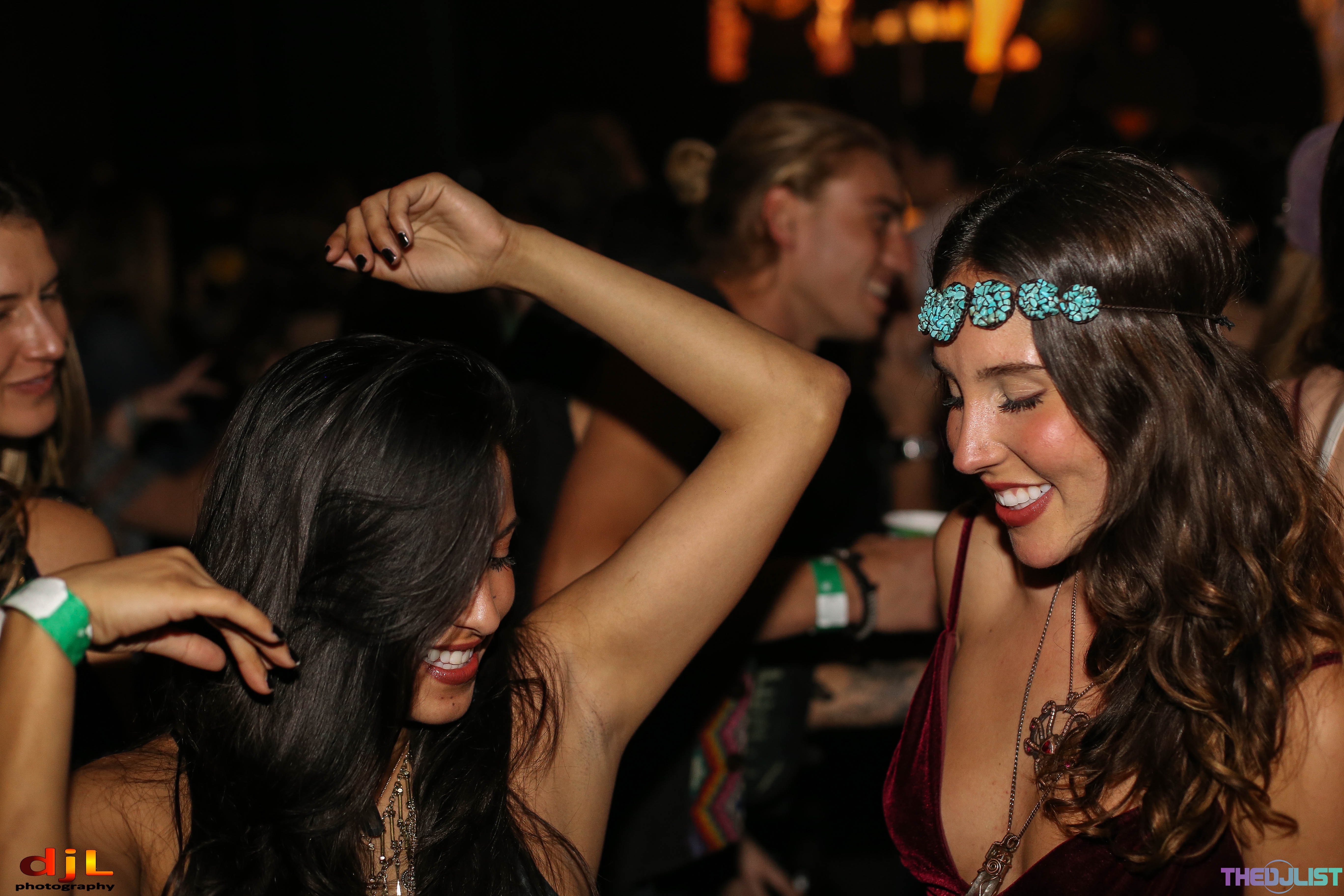 Surprisingly, reconvening with the group after dinner was an easier task than expected – all anyone needed to do was follow the laughter and unabashed good times, thoughtful conversations and serendipitous moments – and you would know you were at our camp.  But, as it turned out, staying together after we left camp was a whole different monster all together.  As parts of the group coagulated, and others dispersed, a fraction of us ended up wandering around the Woogie into the Grand Artique in search of some good, old fashioned entertainment.  What we didn’t expect, was to be greeted by the FUNN Machine, but boy were were ever glad we did!  Between the dozens of disco balls and plethora of bubble machines, we immediately forgot our final destination and gave in to the good vibes.  Slowly but surely, we made it to the Lightning Stage for ODESZA – like literally everyone in attendance flooded the main stage for a sonic seduction of amazing proportions, and the guys surely didn’t disappoint.  Expertly weaving famed remixes with their chart topping hits, we were lost in the throws of musical bliss – and for the record, I can’t wait for them to release that third to last song so full of rich bass and an energetic backbone. The only qualm was that we were pushed back into the merch booth and food stands, leaving almost no area untouched.  Last year, the Lightning Stage sat on an adjoining hilltop and seemed to accommodate more people.  We ventured off to the Thunder Stage where we caught the end of a beautiful Phutureprimative set; his music is only mirrored by his voice, humble and honest, asking us to take what we learn and love about our festival culture and ingrain it back into the ‘real world.’  And finally, Griz graced the stage where he got live and so saxxy on us – in my eyes, a redemption of his set last month at The Wiltern; his music, style and stage presence are so fitting for a festival setting.  As the main three stages were closing down, the side stages were heating up ; the Pagoda Bar featured Headtron favorites like JoBoT and Chris B while the Desert Hearts‘ Favela Bar takeover was in full effect on the other side of the festival.