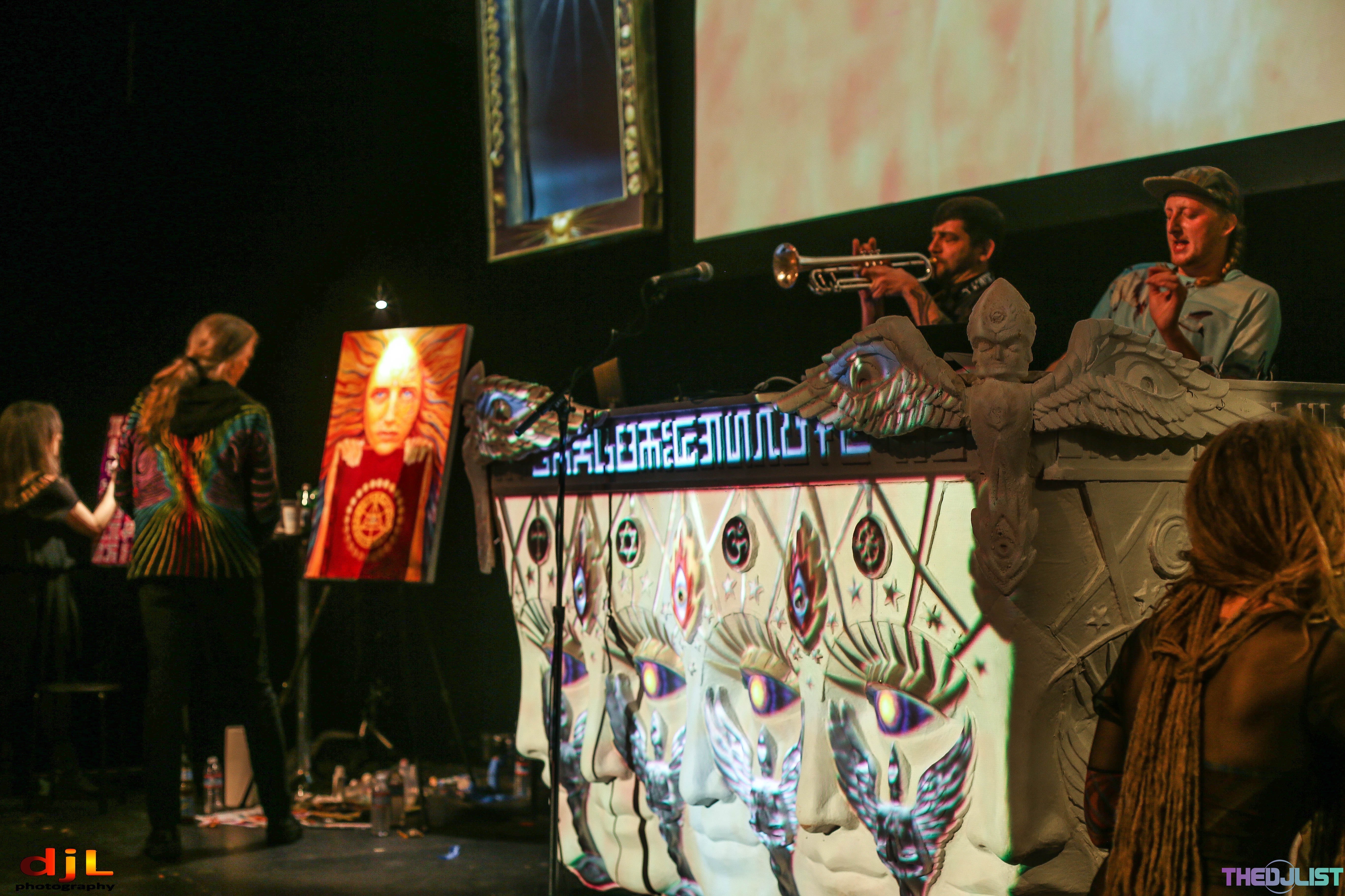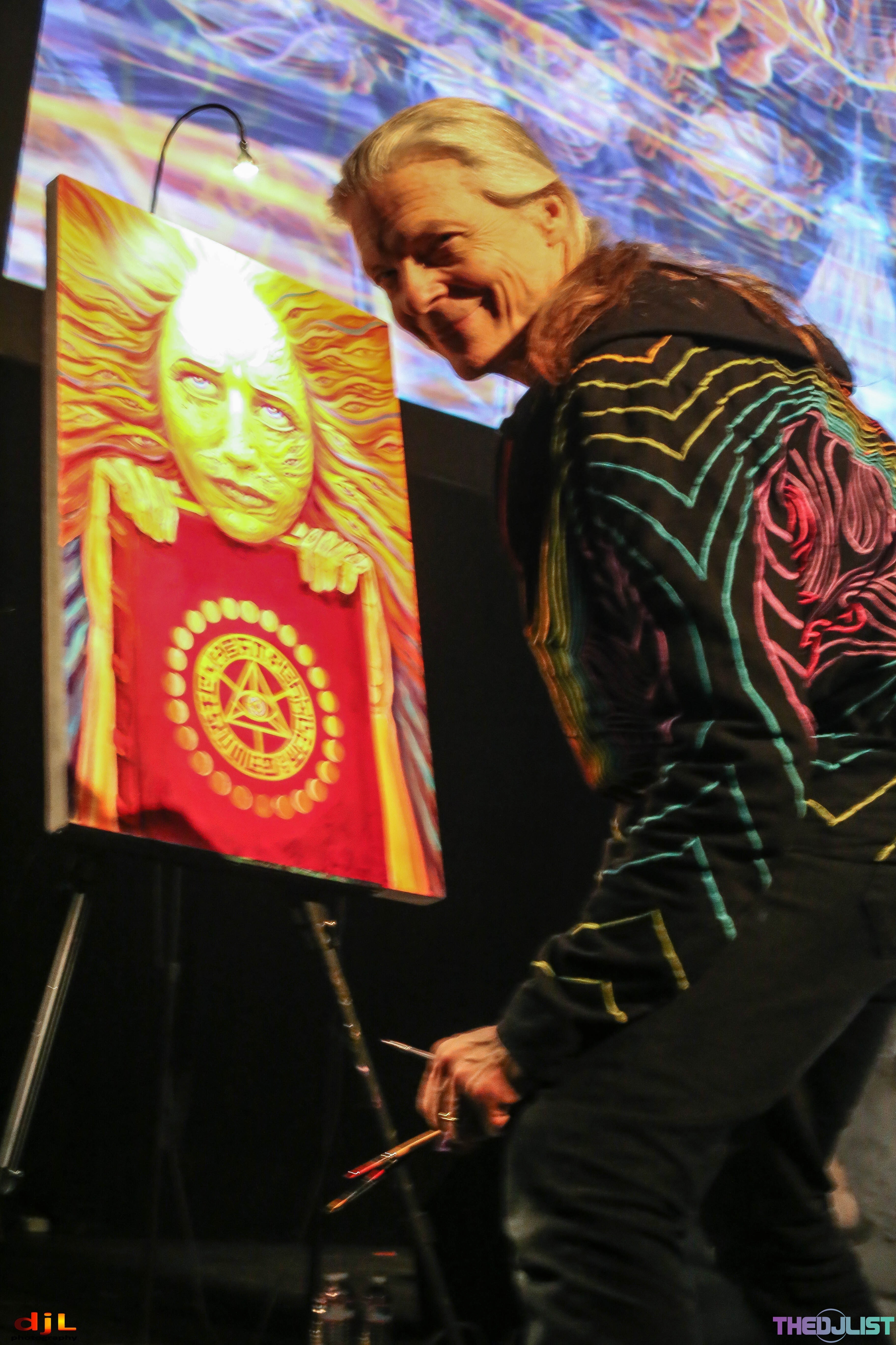 From start to finish, the evening was swimming with fantastic company, boasting the best of their personalities while getting down in their most exuberant, colorful and quirky duds.  It was beautiful to watch the paintings manifest as each musician, one by one graced the epic Entheon Altar DJ Booth, a 3D printout of the official Entheon structure modeled by digital sculptor Ryan Tottle, who made an appearance for the evening.  Crowdfunded through Kickstarter and lovely backers of the arts, the official Entheon building will play host to Alex Grey’s incredible, immersive art at the Chapel of Sacred Mirrors in New York, known to most as CoSM.  And the stage is most certainly set for the official Gem & Jam Festival, happening in Tucson, Arizona from February 6-9