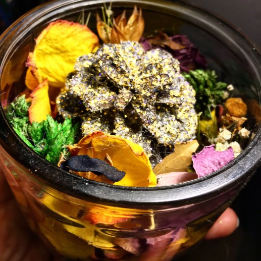With the amount of camping and festivals that Danny and I have been to over the last three years, we’ve actually amassed quite a number of pine cones that are scattered throughout our place – the coffee table, the alter, and in even in a batch of potpourri that I made out of a bouquet of roses. I’d seen a few posts that detailed painting the cones like flowers, but that seemed a bit much for me – glitter, however, that I can do! It’s the perfect combination of natural and whimsical, while providing the perfect accent to any coffee table, window sill – or even in a bowl of pretty and pungent potpourri.