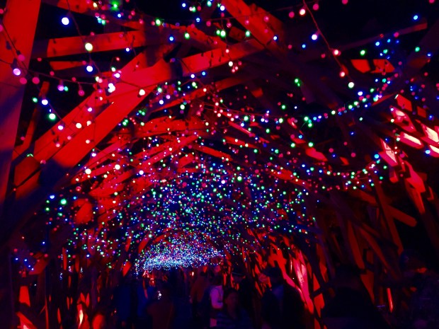 I’ve been known to gush about the plethora of wonderful parks, gardens and green areas in Los Angeles – so when I found out that the Descanso Gardens was hosting an illuminated evening befit with lights from every direction – I was all ears and eyes. In tandem with the LA Zoo Lights event, the fabled Descanso Gardens in Altadena is joining in the fun – creating their own Enchanted Forest for the holiday season. During the day, the sprawling landscape of Descanso consists of a Lilac Garden, a Japanese Garden, California Natives and a sprawling 5 acre rose garden – and at night for the next four weeks, it’s transformed into a whimsical wonderland with expertly curated and interactive exhibits.